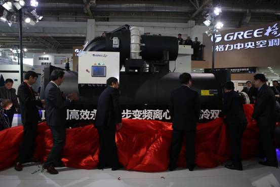 圖為格力高效永磁同步變頻離心式冰蓄冷雙工況機組揭幕儀式