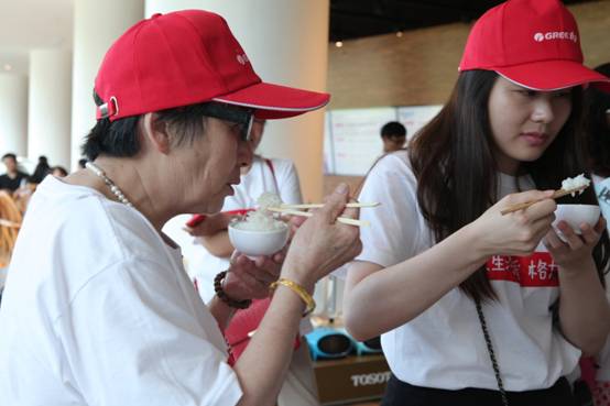 格力工作人員現(xiàn)場(chǎng)給老用戶(hù)們演示了晶弘冰箱的“瞬冷凍”技術(shù),讓從冰箱中取出的冰水瞬間化為冰沙,讓圍觀的老顧客不由的驚嘆出聲,大贊神奇。老用戶(hù)們還品嘗了今年兩會(huì)期間最新推出的大松IH電飯煲蒸煮出來(lái)的米飯。