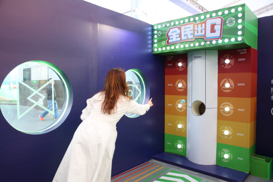在風(fēng)格設(shè)計上,“格力空氣G密所”增添了不少時下年輕人喜歡的新潮元素,吸引了不少年輕觀眾——“新風(fēng)供氧站”的燈條設(shè)計激發(fā)了現(xiàn)場不少潮男潮女的興趣,大家紛紛擺出花樣pose拍照打卡;“全民出G”則最受小朋友歡迎,每投中一次球,小朋友們都會開心地手舞足蹈。