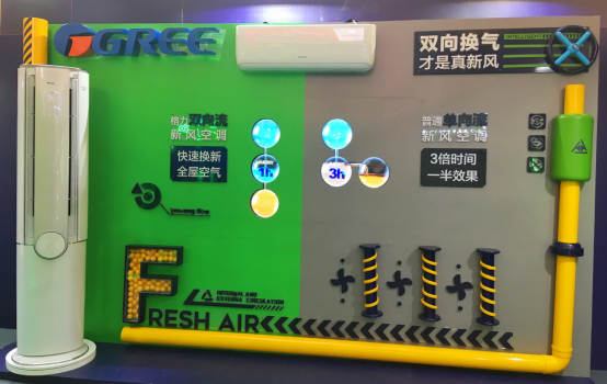 “格力空氣G密所”展示的格力雙向流新風(fēng)換氣技術(shù)則創(chuàng)新突破了行業(yè)技術(shù)瓶頸——它可以模擬人體呼吸方式,主動“呼”出室內(nèi)多余的CO2和含有甲醛的污濁空氣,同時“吸”入室外新風(fēng),通過“呼”與“吸”雙向渠道完成室內(nèi)空氣換新,打造清新呼吸環(huán)境。此外,格力新風(fēng)空調(diào)還內(nèi)置了HEPA過濾網(wǎng),可以有效過濾掉室外新風(fēng)中的PM2.5等顆粒污染物,進(jìn)一步保證呼吸健康。